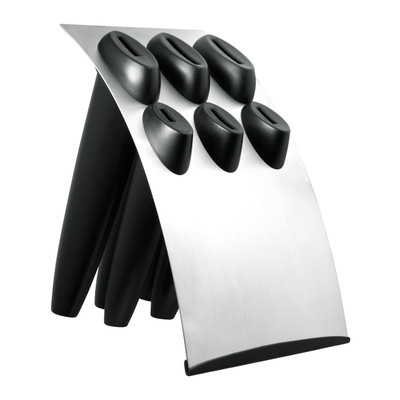 The Millennium Knife Block is made from qaulity Stainless Steel. Please note this knife block does NOT include knives and is only designed to carry the knives from the complete Millennium set.