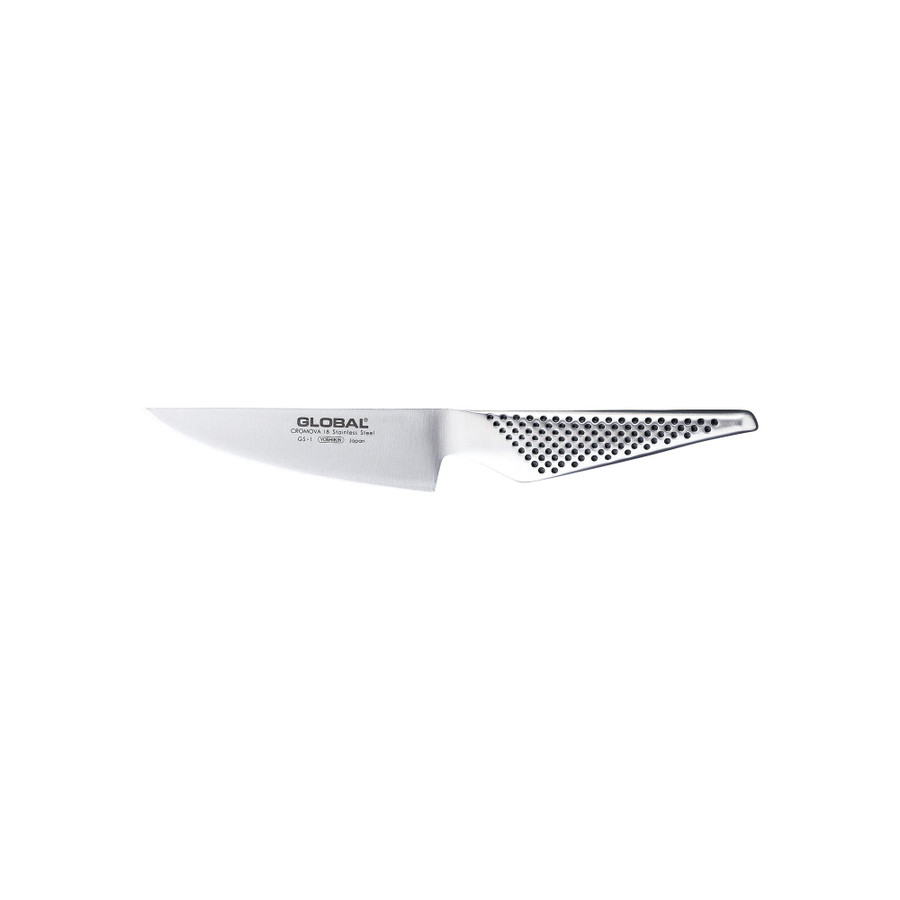 The GS-1 is the smallest stated cook's knife in the GLOBAL range with an 11cm blade and like all cook's knives is a multi-purpose knife used for cutting, slicing and chopping. Use this knife for small kitchen work, cutting the leaves from strawberries or quartering oranges.